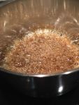 Lorsque le caramel a pris (ne pas le laisser bruler), ajouter l’ail. Mettre la viande et mélanger. S’il y a des « morceaux » de caramel, c’est normal.