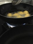 Faire cuire les pommes de terre dans un bain d’huile pour qu’elles soient dorées. Dans un fond d’huile chaud, mettre les carottes et une pincée de sel, puis laisser cuire une dizaine de minutes (un peu croquantes à l’extérieur, fondantes à l’intérieur). Réserver les carottes et faire dorer les oignons dans le reste d’huile.