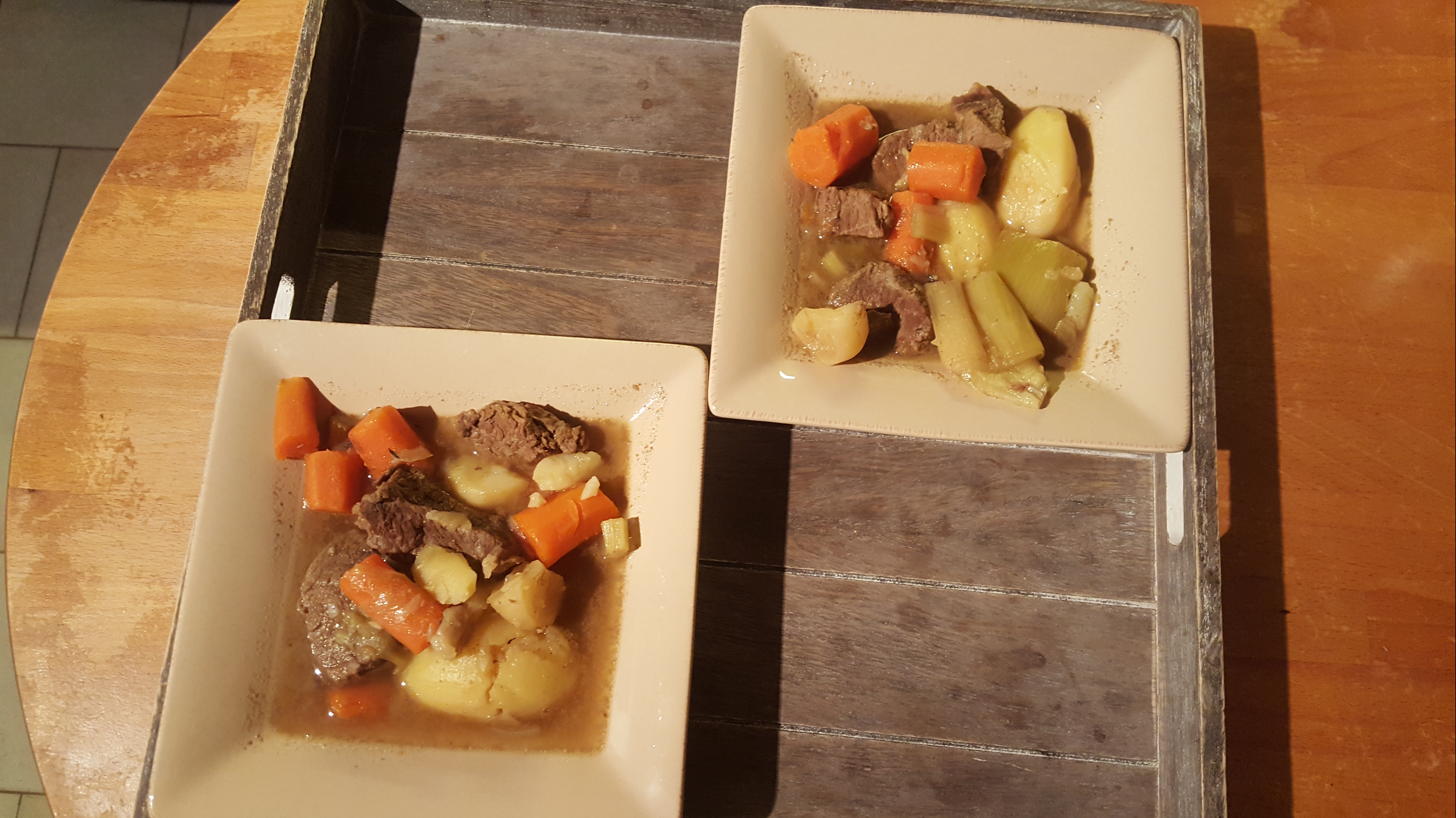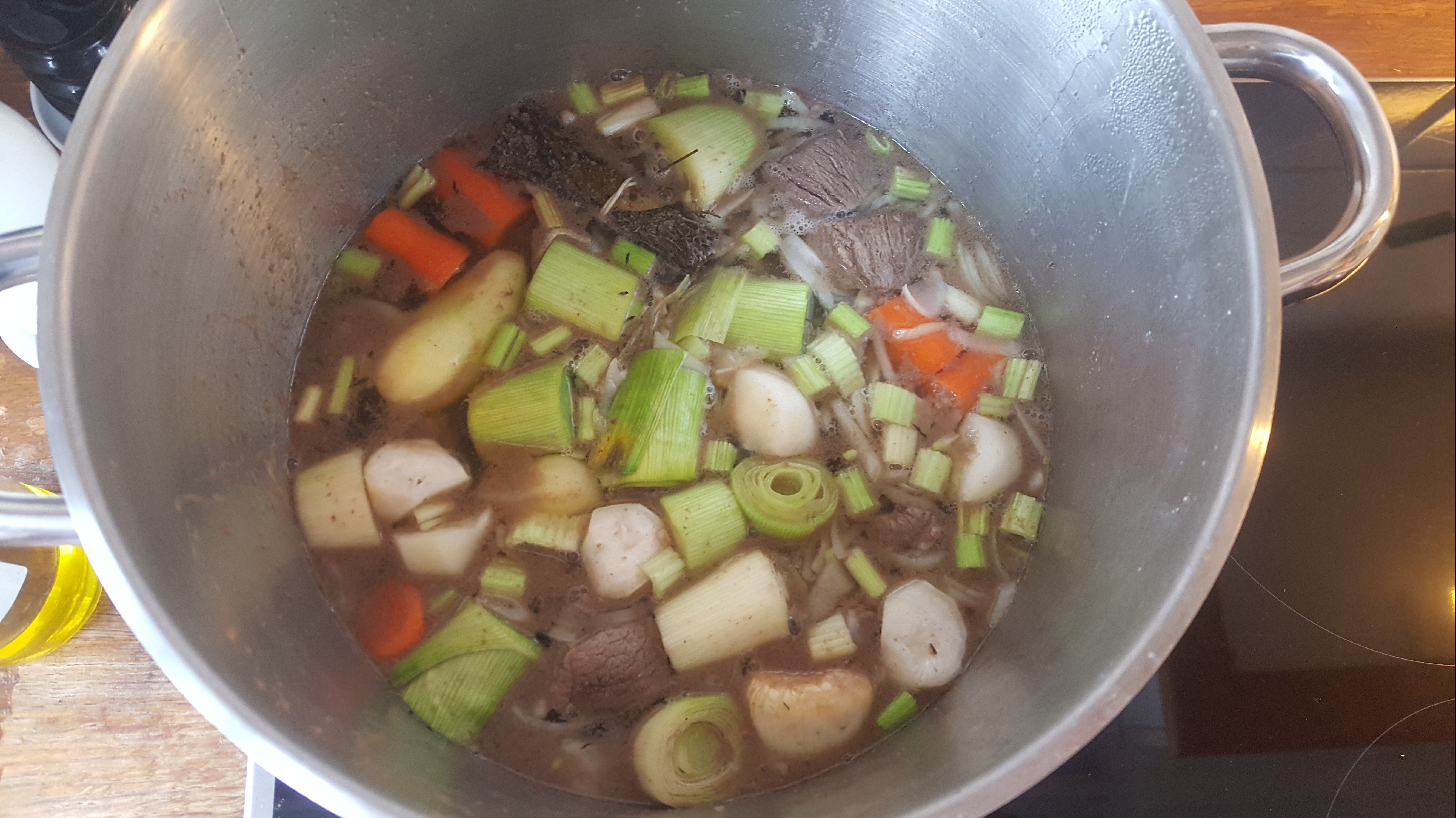 Si vous utiliser la cocotte, laisser cuire 3h30 et ajouter les pommes de terre 30 minutes avant la fin.