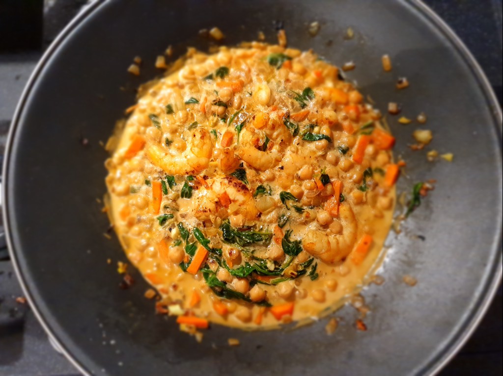 Alors ? Curry crevettes, épinards, pois chiches et cajou ce soir ?
