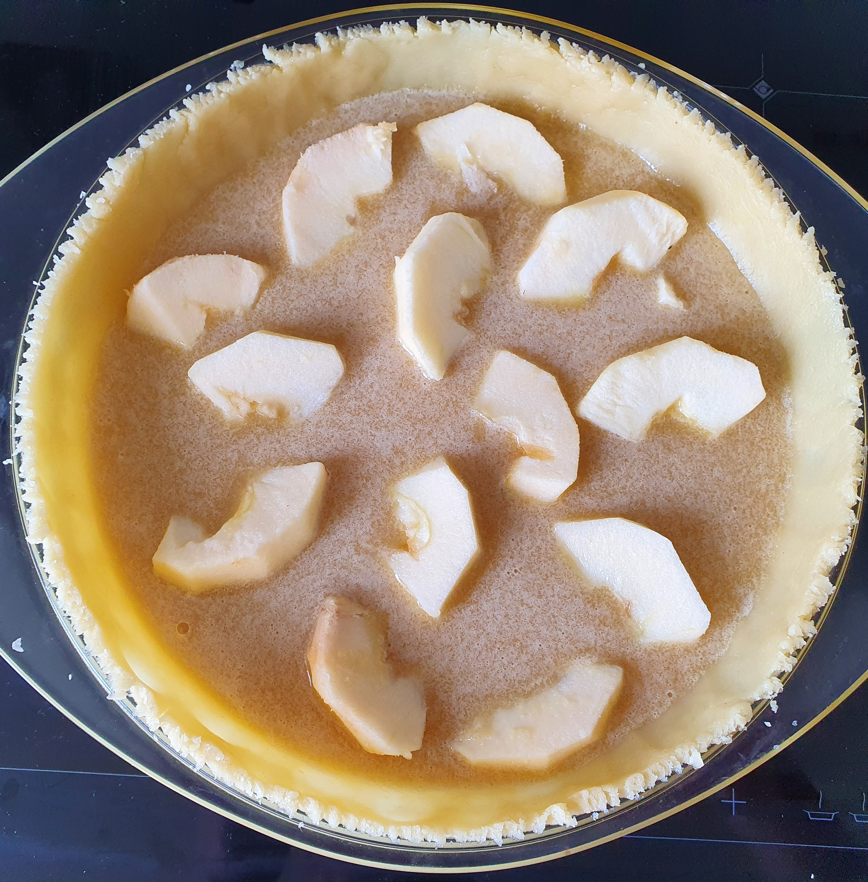 Facultatif : on peut saupoudrer de sucre glace une foie la tarte refroidie.