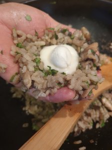 - Du risotto froid (c’est meilleur refroidi, il « colle » plus)