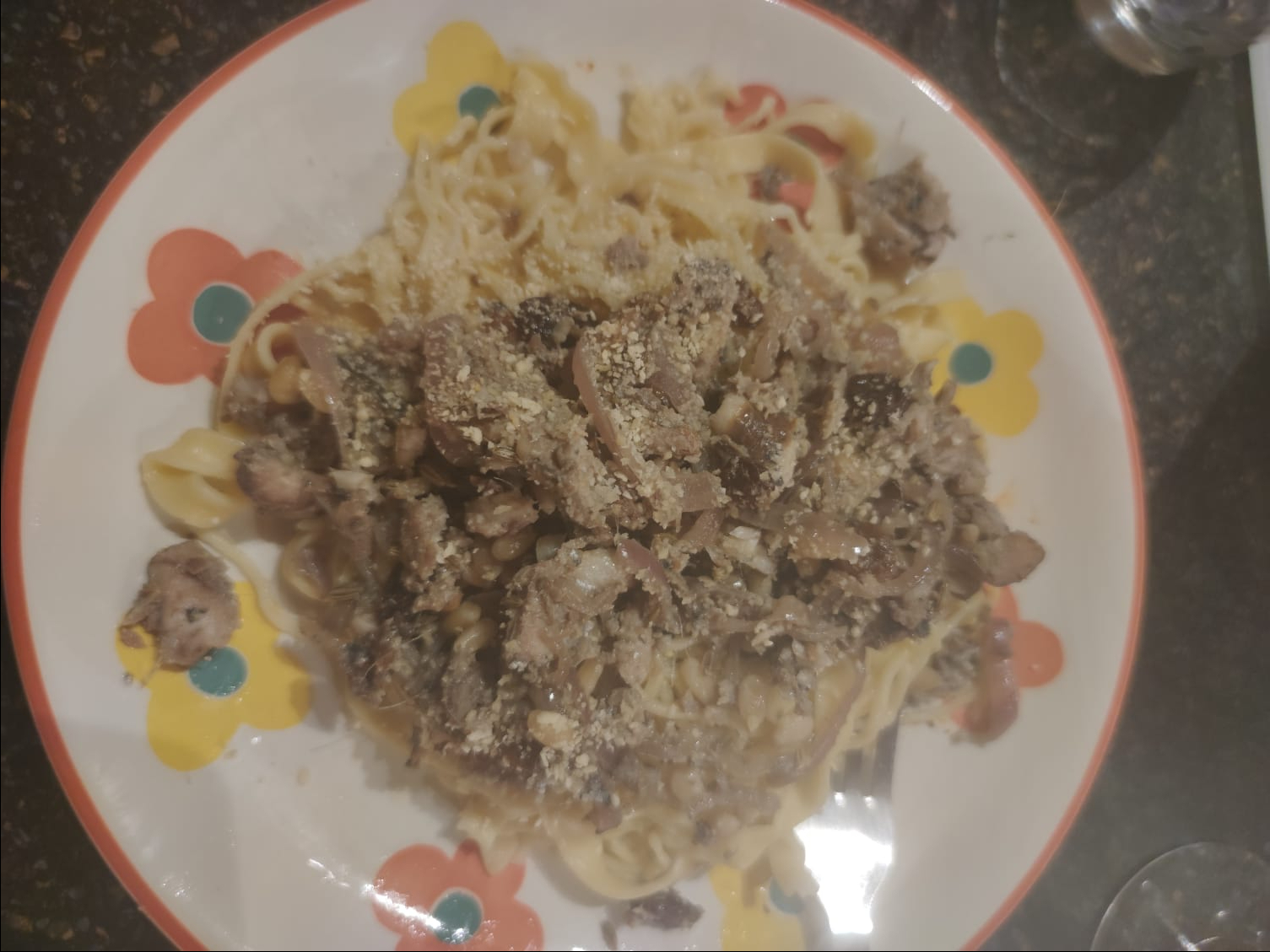 - 400g de spaghettis (ou tagliatelles) fraîches (ou encore mieux maison si vous avez une machine à pâtes)