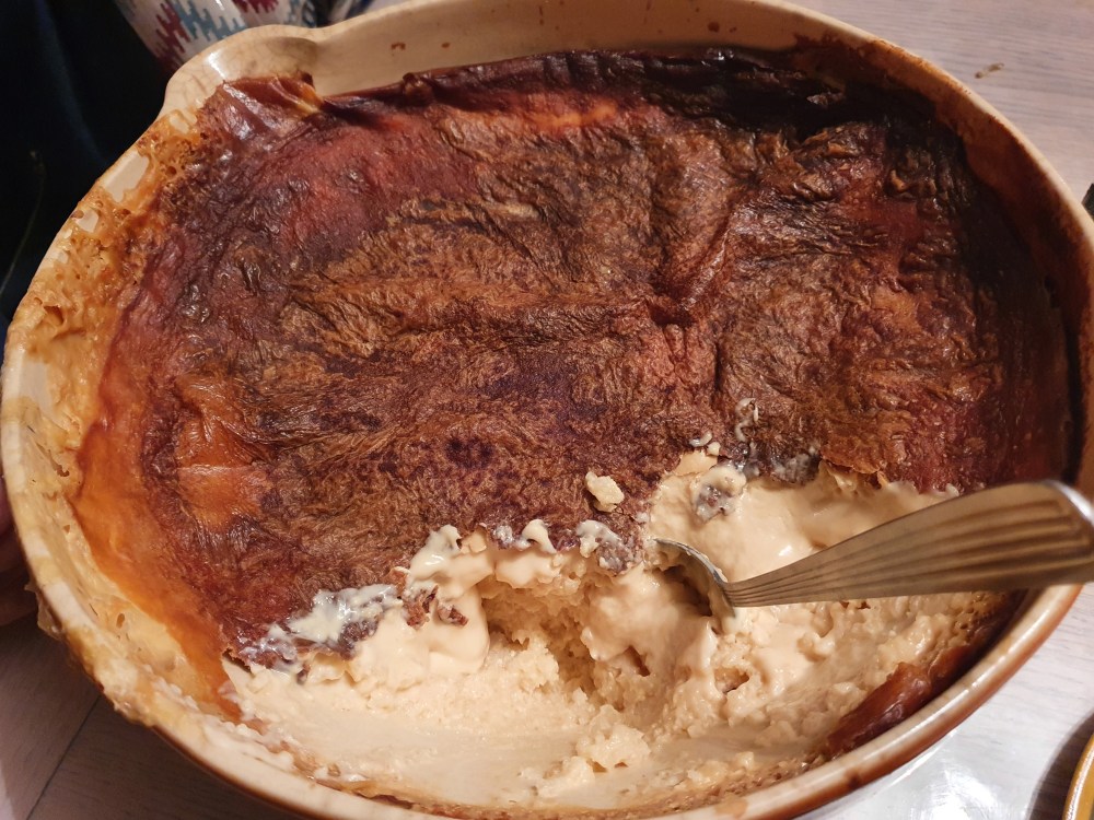 Enfourner pour 5 heures. La préparation ne doit pas être liquide et une croûte dorée doit s’être formée sur le dessus.