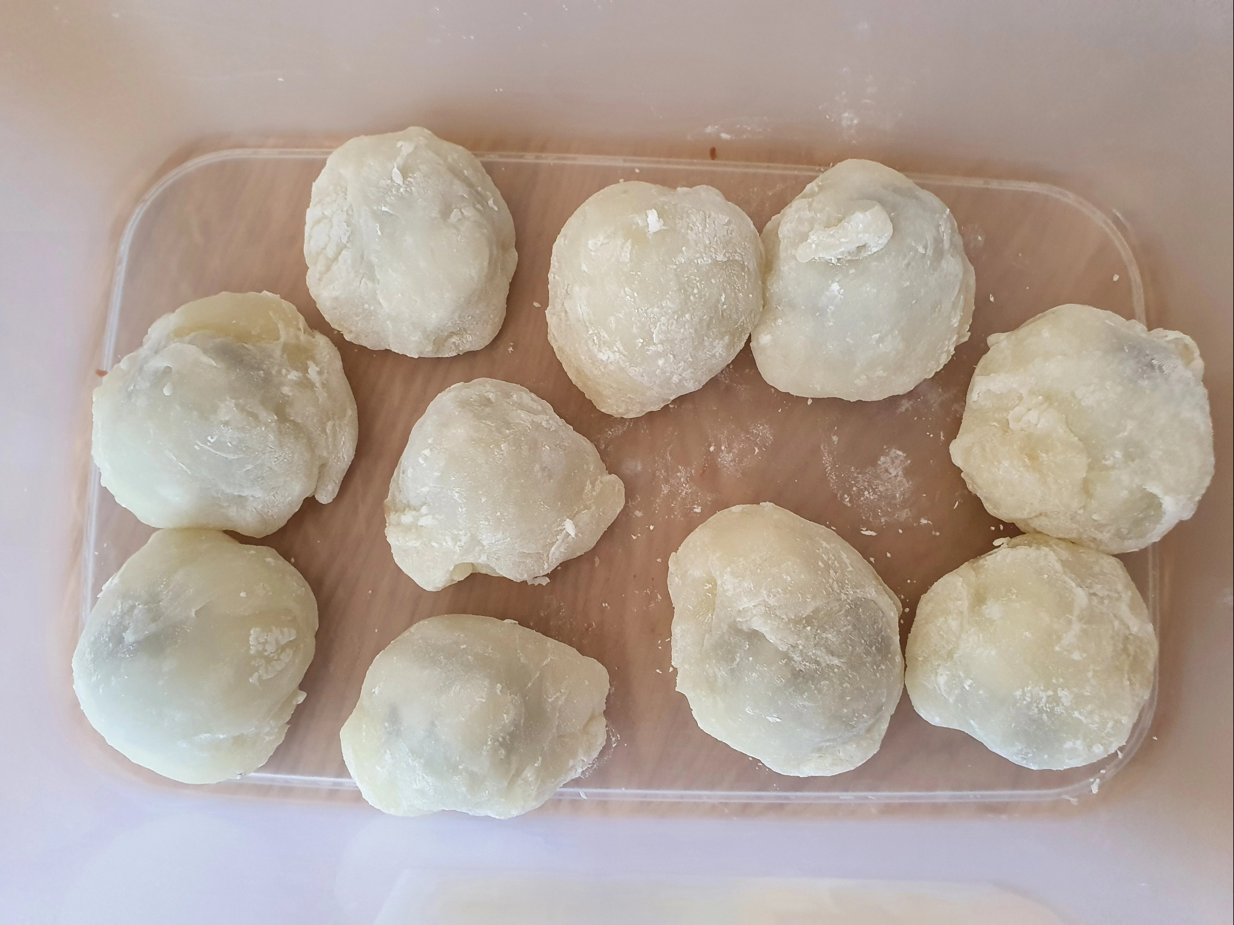 Mettre les mochis au réfrigérateur et les déguster quelques heures plus tard ou le lendemain maximum (après ils s’assèchent et ne sont plus aussi bons).