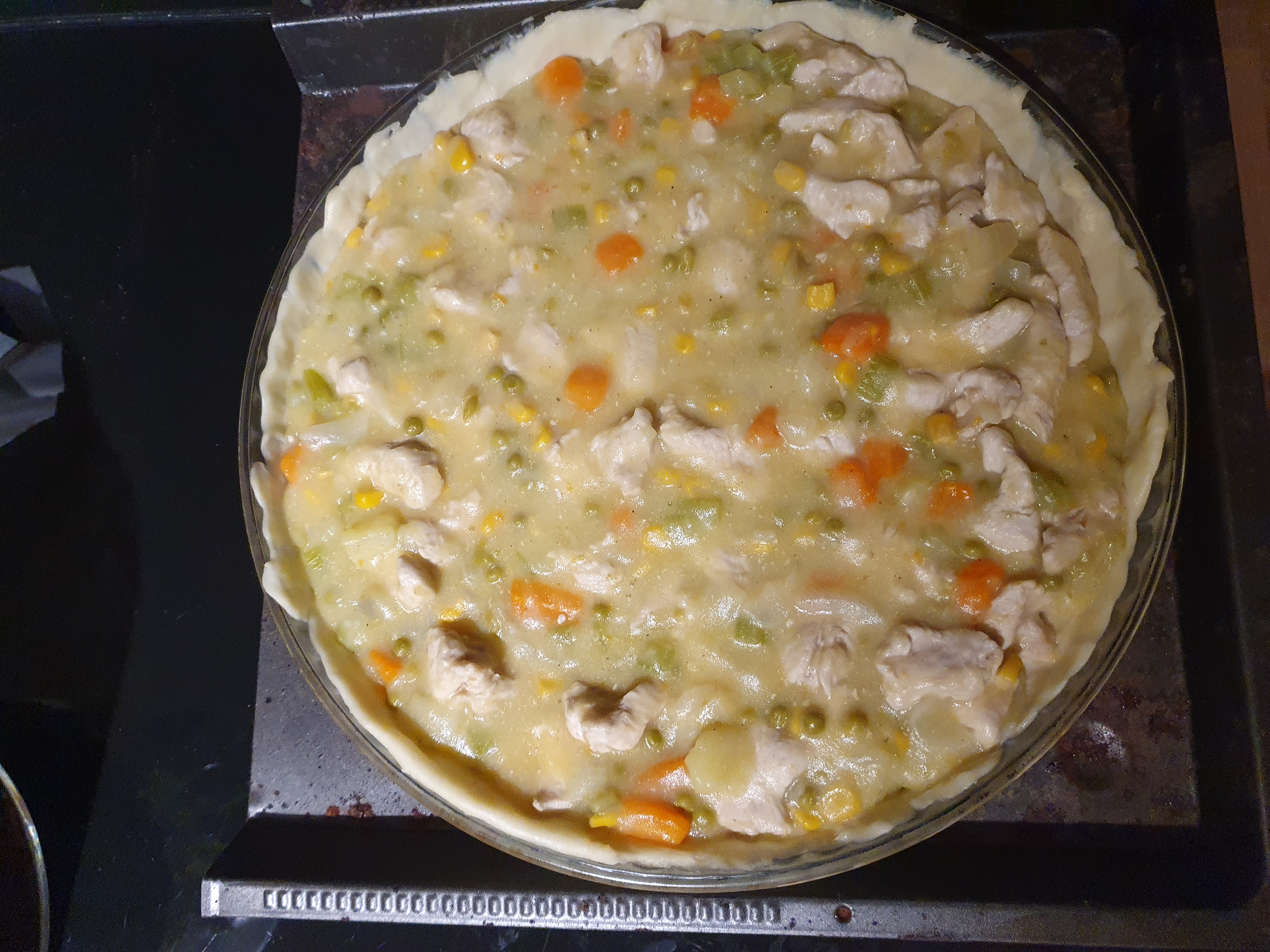 Cela faisait bien longtemps que je n’avais pas posté d’article. Nouveau travail, nouvelle organisation à trouver :). Je me décide donc à poster cette recette car elle est d’actualité, nous l’avons testée pour Thanksgiving. Cette tourte au poulet ou à la dinde et aux petits légumes, associés à une sauce crémeuse réconfortante est une régalade :p. Nous l’avons simplement accompagnée d’une salade car elle contient déjà protéines et légumes. Je l’ai préparée la veille et placée au réfrigérateur. Elle se conserve très bien un jour ou deux.